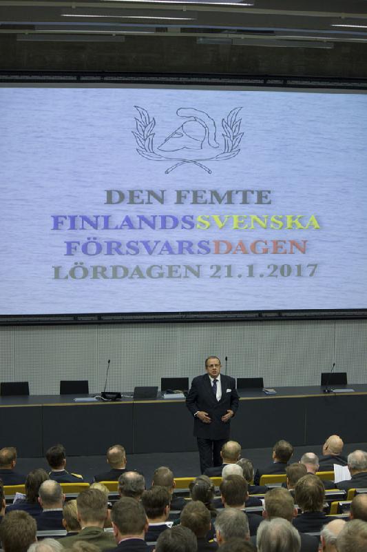 Den femte finlandssvenska försvarsdagen gick av stapeln den 21 januari på Försvarshögskolan på Sandhamn i Helsingfors, denna gång med 200 deltagare. Närvarande var bl.a. Sveriges ambassadör Anders Ahnlid och Estlands ambassadör Margus Laidre och ett antal reservofficerare från Sverige, Norge och Danmark. Dagen belyste försvarets i Finland aktuella satsningar och övningar samt utbildningsfrågor. Huvudstabens chef, viceamiral Kari Takanen berörde även marinens och flygets kommande storinvesteringar. Försvarsministeriets kommunikationsdirektör Max Arhippainen höll ett anförande om de ryska påtryckningarna mot Finland ifråga om information och annat. Generallöjtnant Dennis Gyllenesporre, chefen för ledningsstaben vid Högkvarteret i Sverige beskrev utvecklingen av Försvarsmakten i Sverige och nämnde bl.a. upprustandet av Gotland och med storövningen Aurora 17 som sker inkommande höst med 20000 svenska soldater. Hotbilderna mot Finland belystes mångsidigt, den gigantiska ryska militära upprustningen och försvars- och säkerhetspolitikens mediabild i Sverige. Om debatten i Sverige och mediabilden talade ledarskribenten Patrik Oksanen.