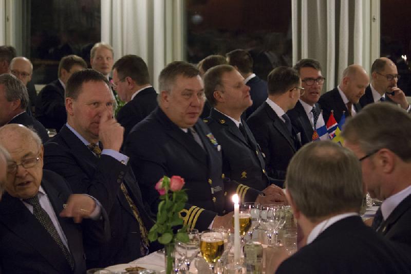 På kvällen följde en middag i Försvarshögskolans festsal. Vid middagen uppträdde en dubbelkvartett från Akademiska Sångföreningen.
